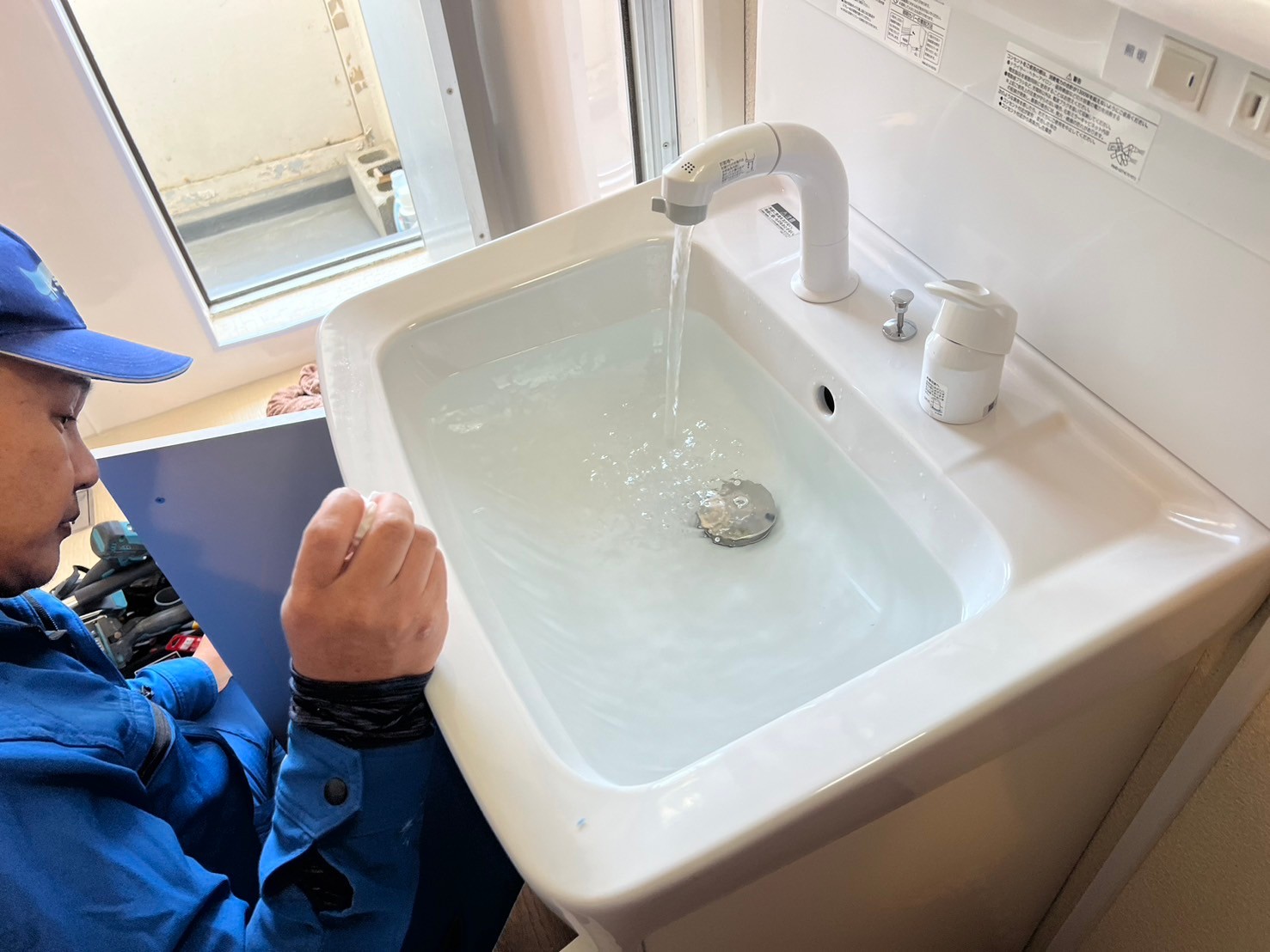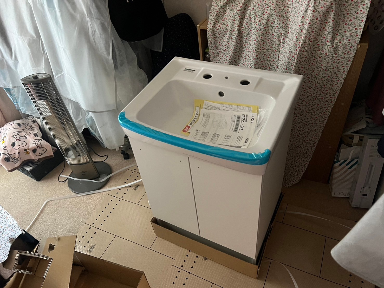 エコ機能も充実しリフォームでも新築物件にも選ばれる人気の洗面化粧台を取付け作業完了です。