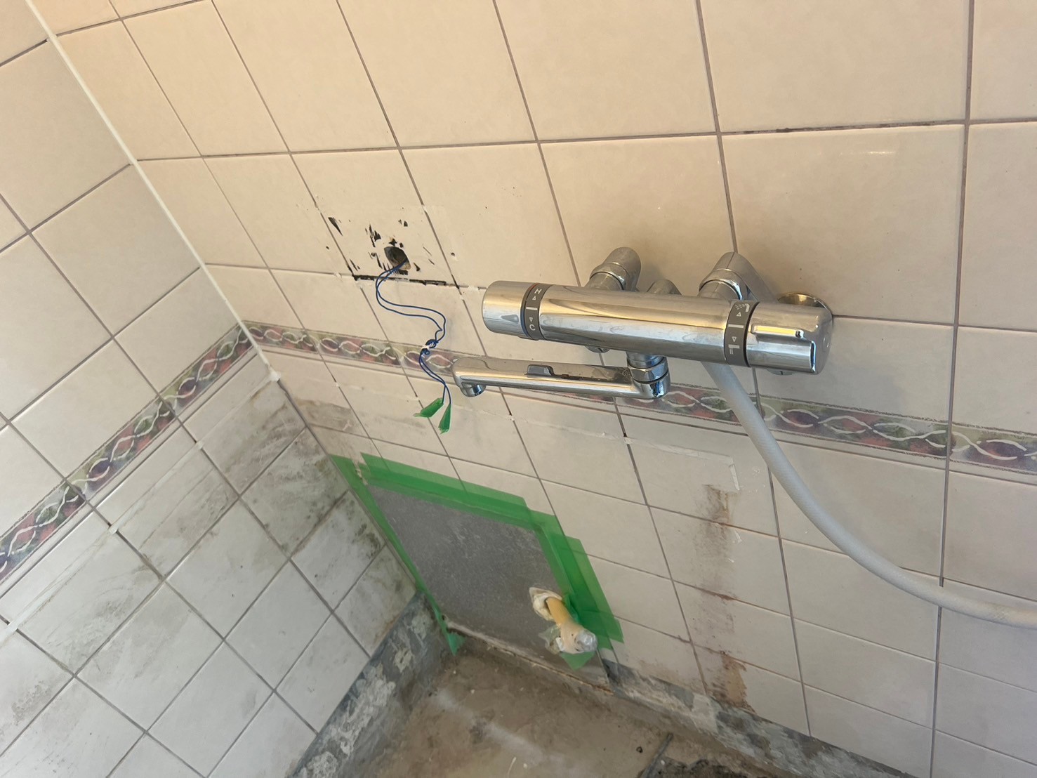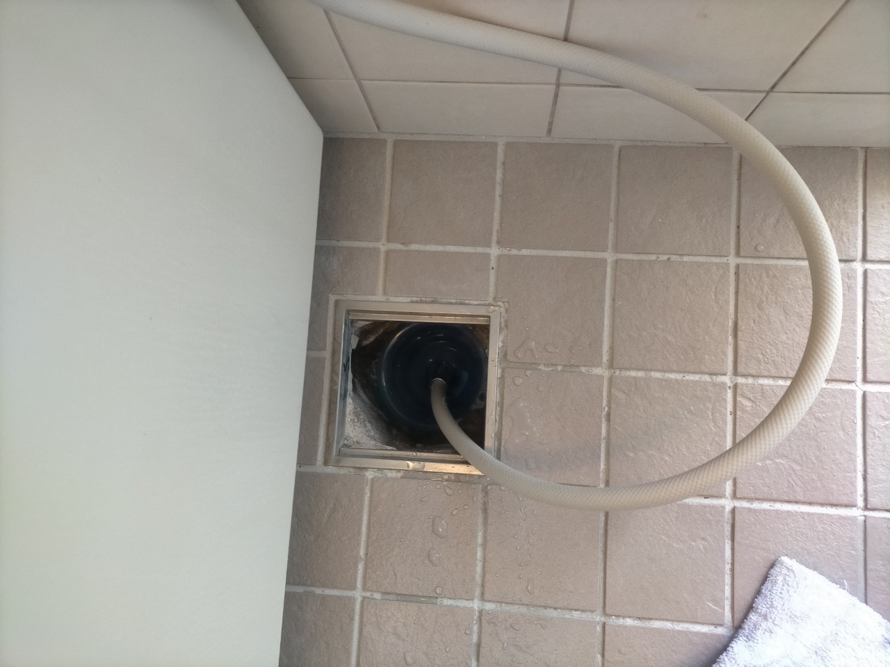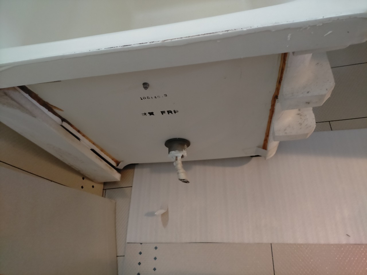 下の階の浴室に養生をし、作業させて頂きます。