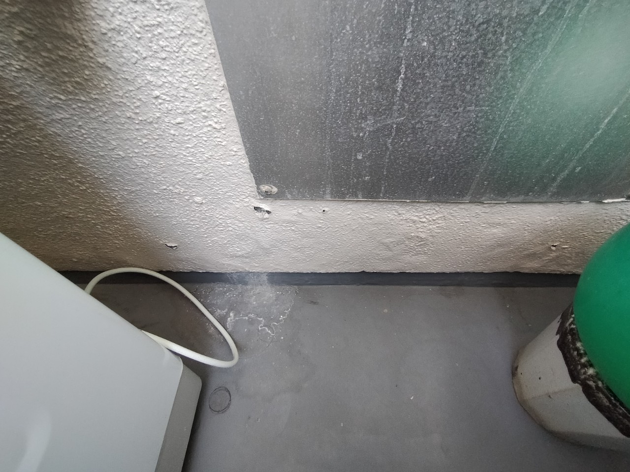 水の跡があったベランダに水が滲んできました。