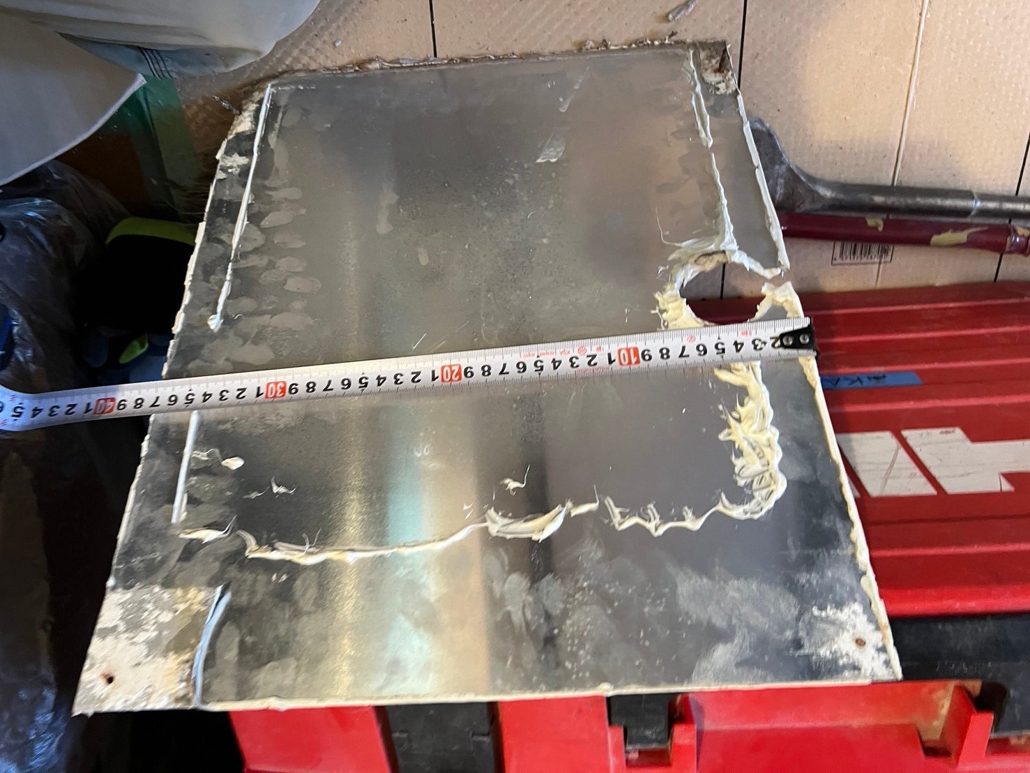 コンクリートの下からシルバーの板が見えてきました。