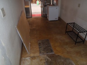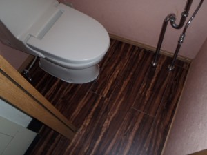 ①施工前の床は住居用のクッションフロアが敷かれてありました。