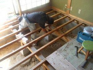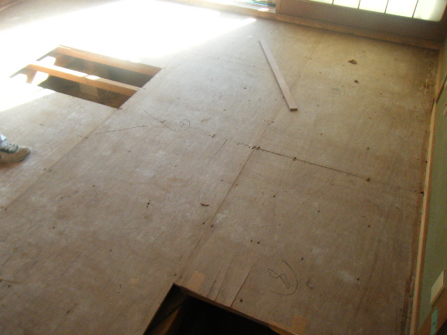 畳をめくると床板が老化してガタガタになっていました。