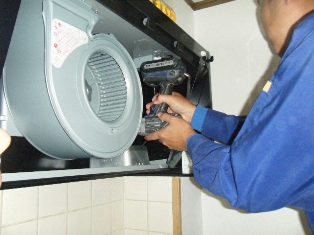入居者様から、オーナー様へ連絡があり、レンジフードの音が煩いので見に来て欲しいとの事。