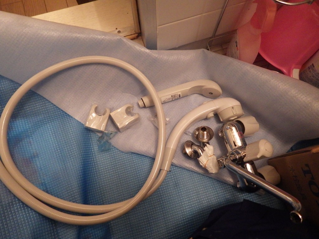 賃貸ハイツ 浴室のシャワー水栓金具の取替え工事です。