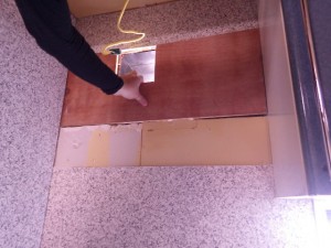 水平機で確認しながら本体を設置し、ダクトを取付けます。