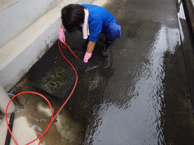 神戸市長田区のお客様より、雨水桝が溢れるとのことで連絡を頂きました。 パイプ内の泥などを取り除き、修繕しました。