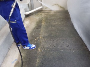 最後に、床や壁の苔を高圧洗浄機で除去し、完了です。
