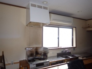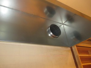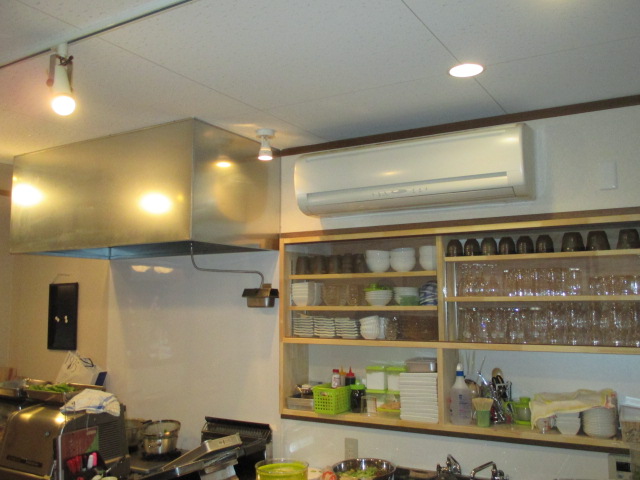 厨房は油をよく使う上、お客様との距離も近いため油煙が広がらないようダクトを設け、業務用の換気扇に交換しました。