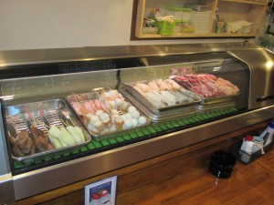 カウンター席のお店ですのでお客様にその日のネタを見ながら注文して頂けるよう、ネタケースを配置しました。