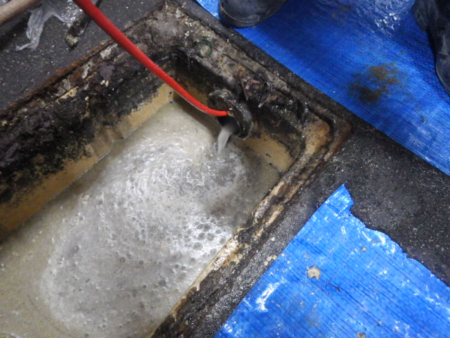 今回は、お店 厨房のグリストラップの洗浄をさせていただきました。