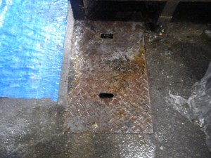 排水管の詰まりも解消し排水されるみずも透明になり、鉄板の蓋をして作業完了です。
