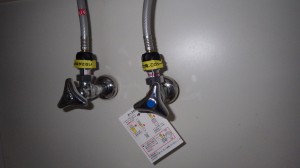 新しい水栓のホースを止水栓にに取り付け止水栓を開けます。