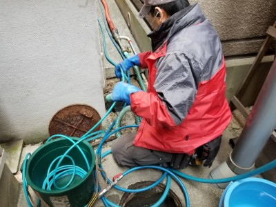 高圧洗浄 業中 排水管 トラブラン